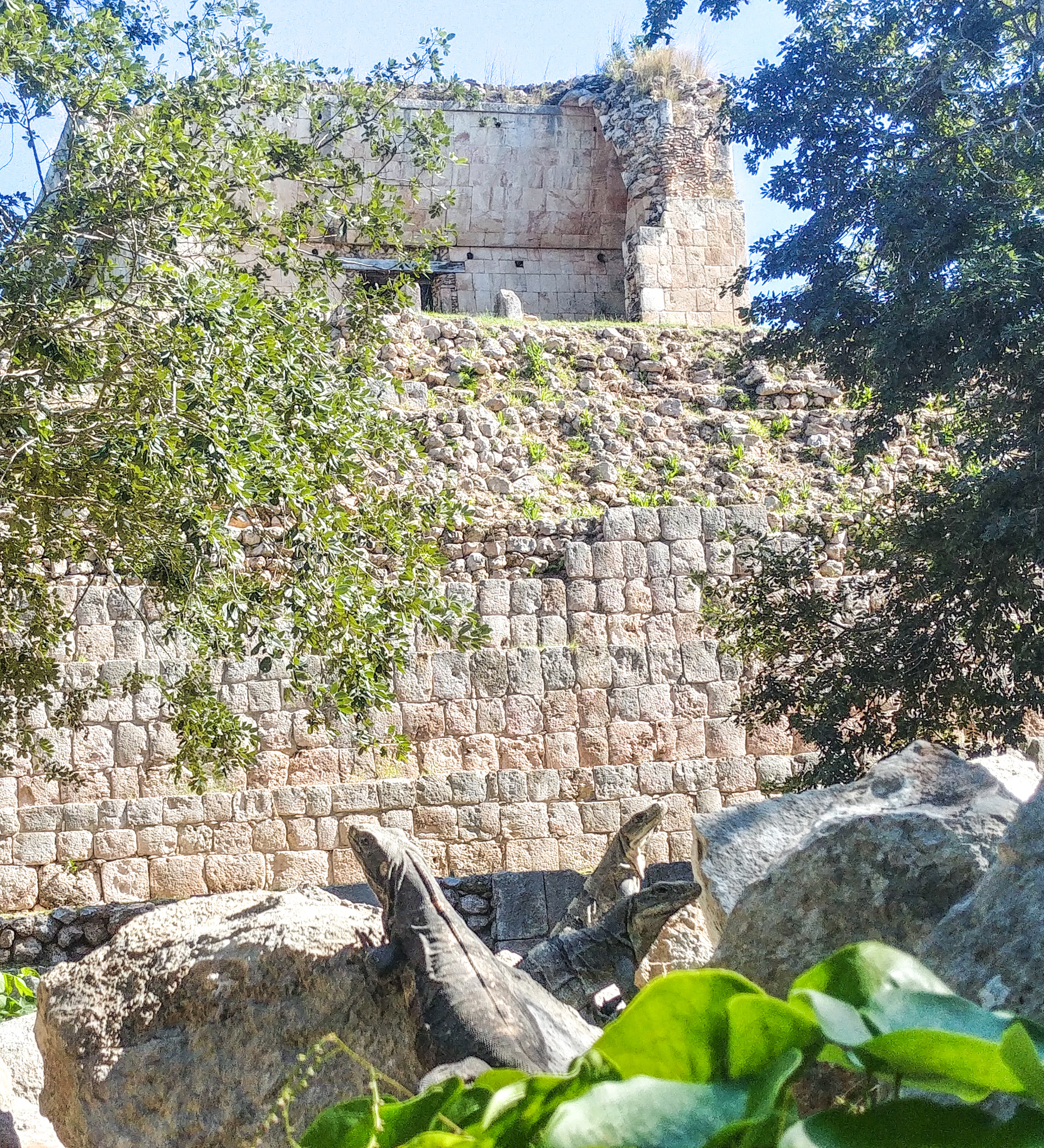 On poursuit la journée par la visite du Temple d’Uxmal où l’on a pu découvrir le plus beau des sites Maya selon nous. Le site est très bien entretenu et les ruines encore majestueuses. Et pour ne rien gâcher, c’est le temple des iguanes, on en voit partout !